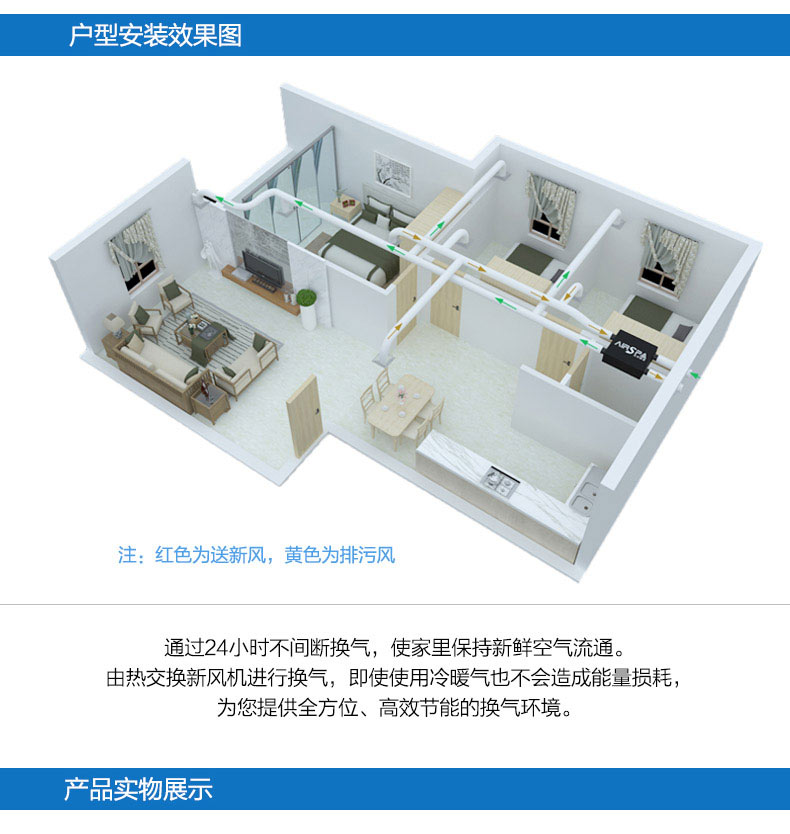 高能效比:采用水平進(jìn)排風(fēng),具非常高的能效比,可回收70%以上能量 高效過濾:采用歐洲標(biāo)準(zhǔn)H13級(jí)過濾,多重過濾;PM2.5過濾99%以上 雙向流新風(fēng)機(jī):訂機(jī)采用雙核動(dòng)力設(shè)計(jì),動(dòng)力強(qiáng),體積小;采用直流無刷電機(jī),低噪音,低能耗