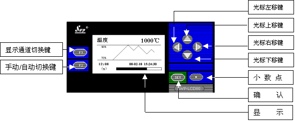 SWP-LCD儀表的外形尺寸為80×160×140 mm,配以40×70 mm帶背光的液晶圖型顯示板,可集中顯示中文提示,設(shè)置參數(shù),補償數(shù)值,測量數(shù)據(jù),積算結(jié)果,工程單位,報警狀況等。